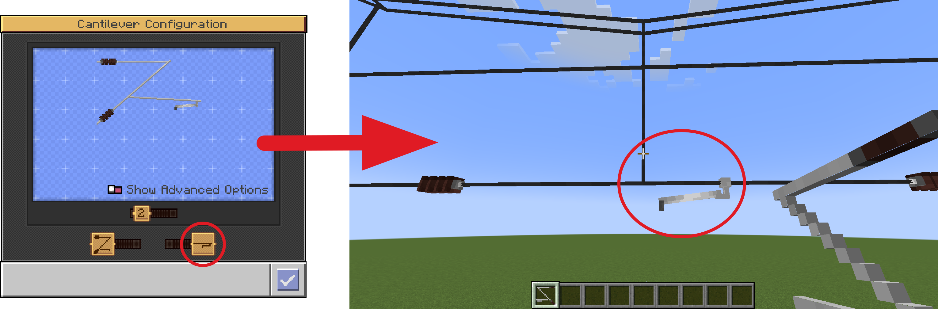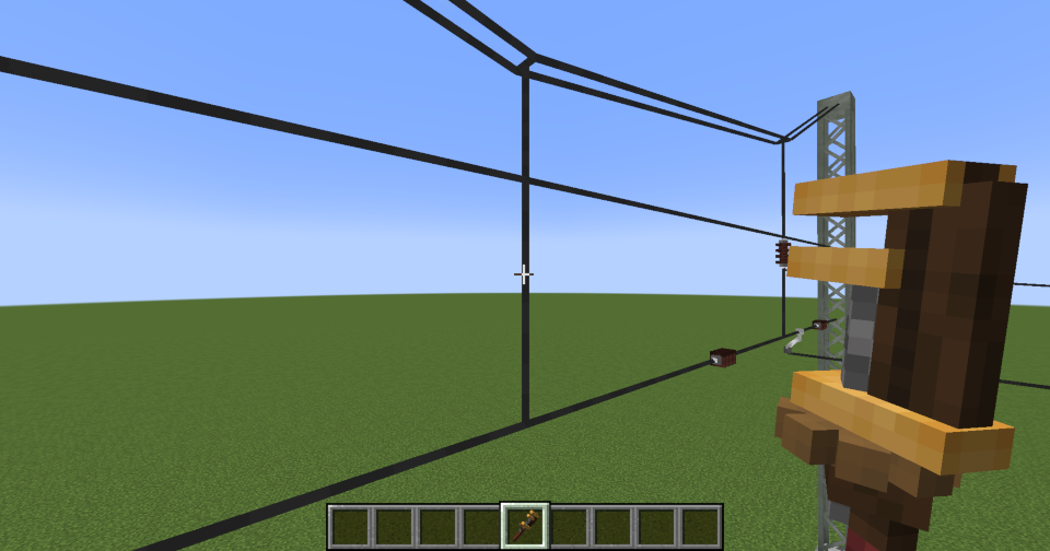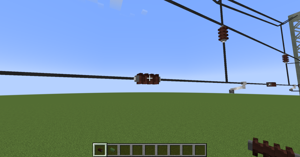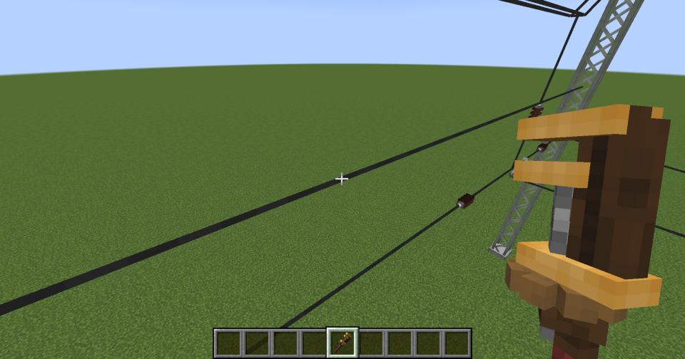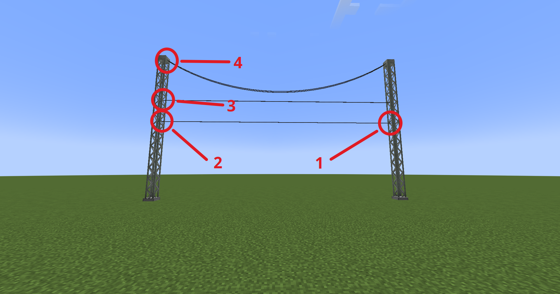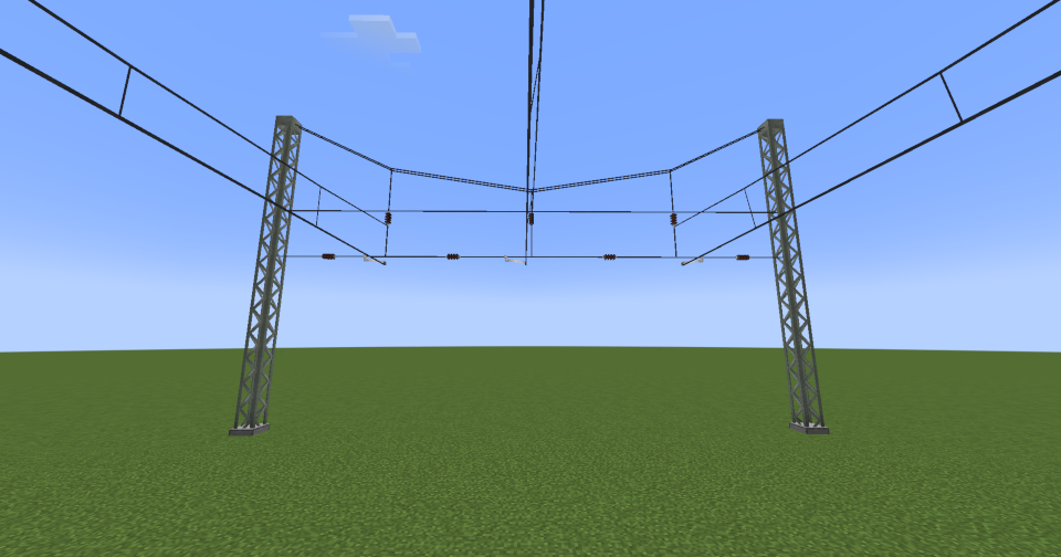 - The distance between the two lower wires (the ones carrying the catenary wires) must be at least 1 block.